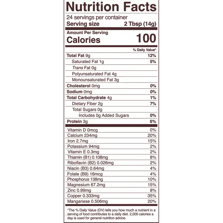 Just 2 tablespoons deliver up to 20% of your daily calcium—essential for strong bones, teeth, and nerve function. A true gift for dairy-free and plant-based eaters!